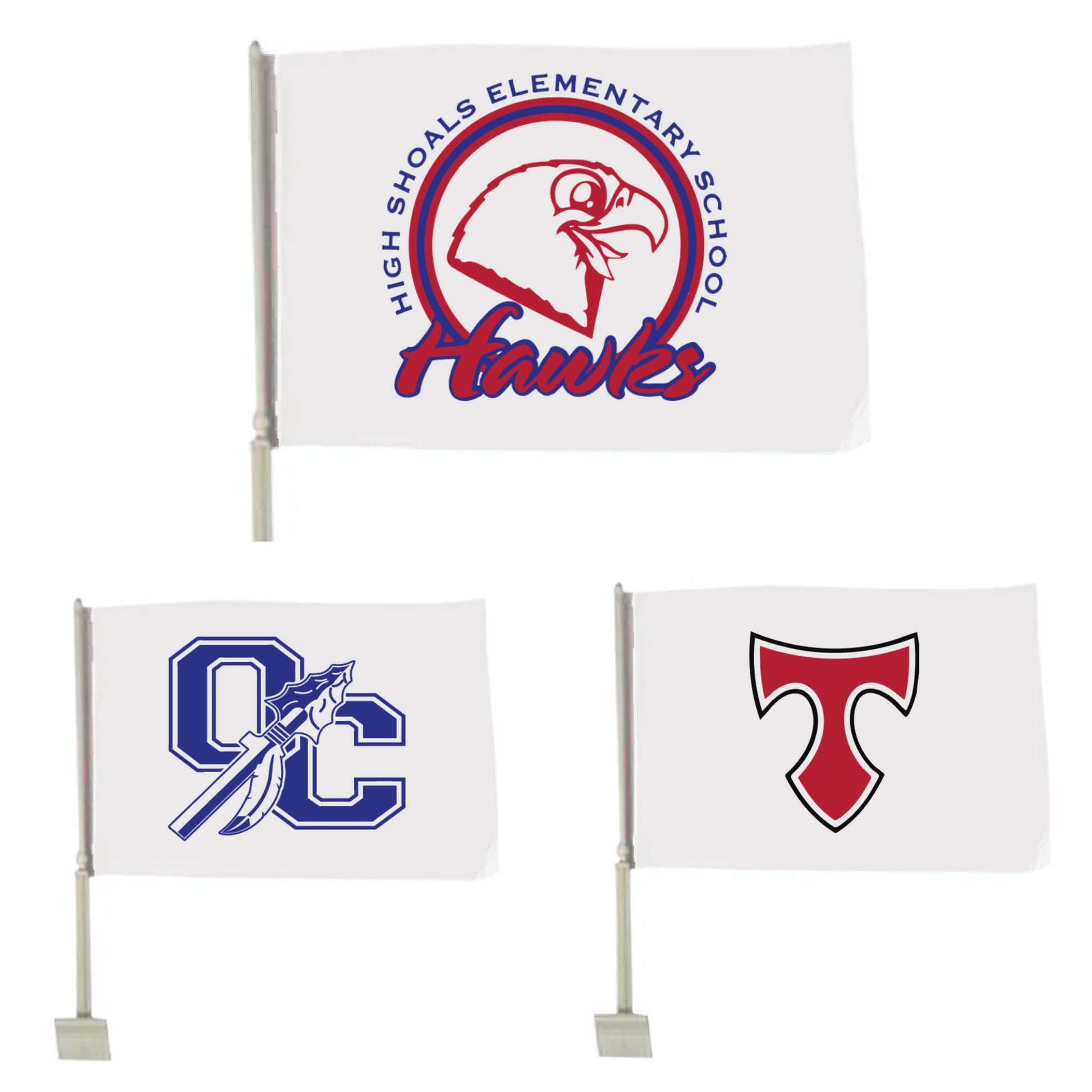 Rep your Oconee spirit whether for the Warriors, Titans, or our very own Hawks! Now wherever you go your school pride will be on display with these double sided car flags.