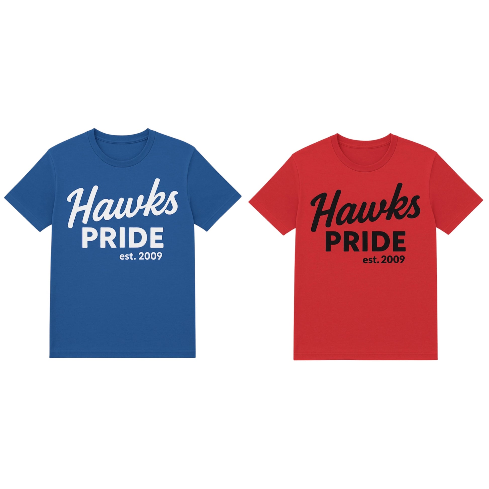 Make your school spirit known in this classic, bold design declaring your Hawk Pride! Available in either a red or blue soft tri-blend short sleeve this is the perfect shirt for Hawk students, parents, and staff alike.